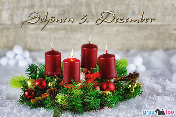 Kostenloses 3. Dezember Bild Rotes Adventsgesteck 1 mit dem Gruß Gemuetlichen 3 Dezember.