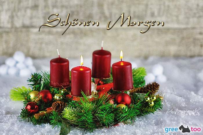 Kostenloses Guten Morgen Bild Engel Adventskranz 3 mit dem Gruß Schoenen Morgen.