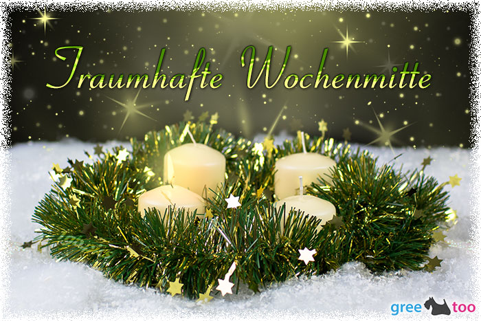 Kostenloses Grüße zur Wochenmitte Bild Creme Adventskranz 4 mit dem Gruß Traumhafte Wochenmitte.